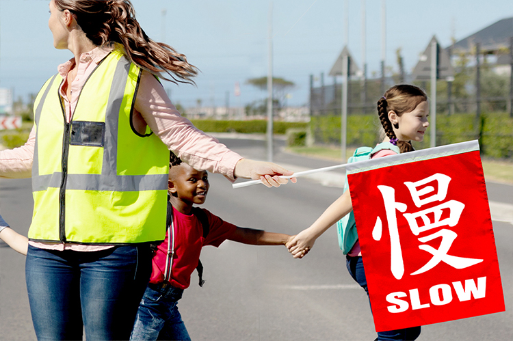 導護旗(停、慢字旗)